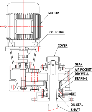 HOLLOW SHAFT is tapered and TAPER ROLLER BEARING is used to bore the top of DRIVE SHAFT and fasten the unit with LOCK NUTS & WASHERS. This minimizes the vibration of shaft while the agitator is operated.