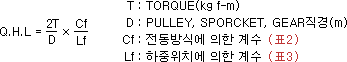 이 부하계수는 충격이 없는 일정한 하중으로 1일 8시간을 기초로 한 것이므로 사용조건에 의한 부하에 부하계수를 곱하여 등가부하를 산출 감속기를 선정합니다.
